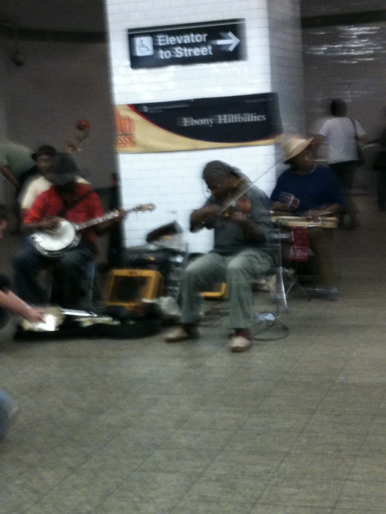 The Ebony Hillbillies played a free concert on New Haven Green June 19 for the International Festival of Arts & Ideas. Here they were Thursday, July 14, rousing ambient villagers of a whole different culture and pace, at the Grand Central subway stop in the band’s accustomed NYC stomping grounds.
