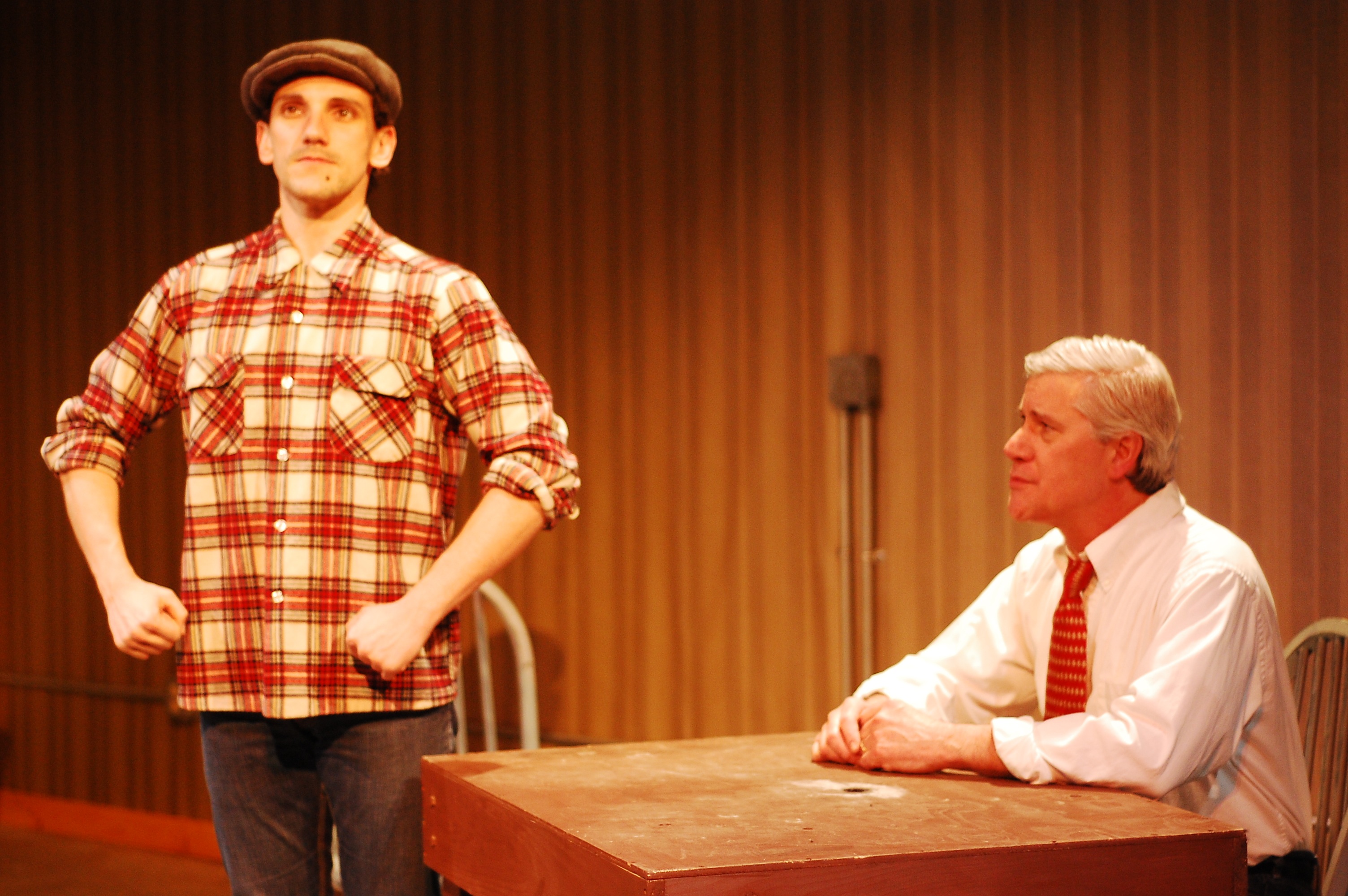 George Kulp, seated, as Harry Fatt in Waiting for Lefty, with the upstanding Christian Shaboo as Phillips.