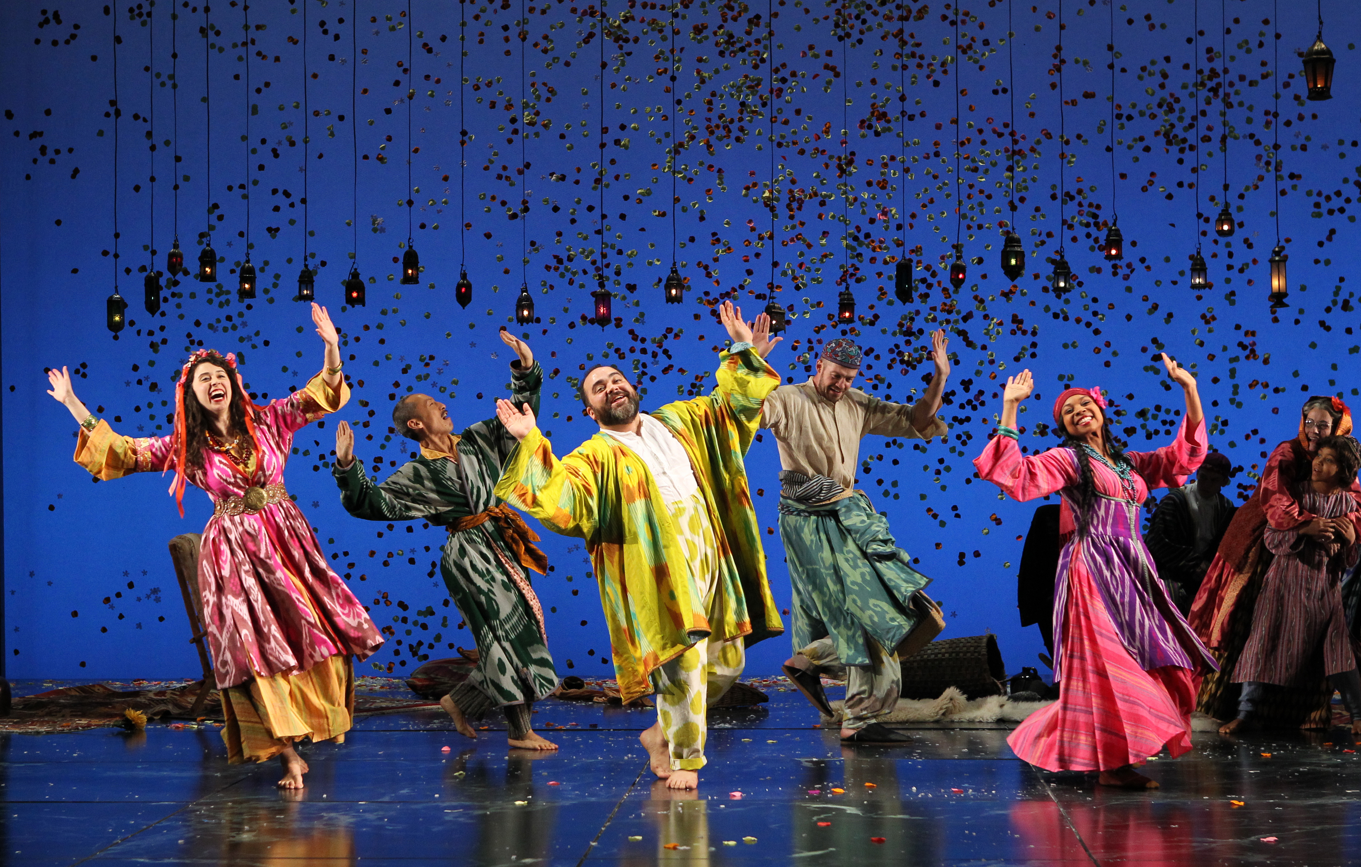 Richard Ruiz, in yellow, leading the dance in The Winter's Tale at Yale Rep through April 7. Photo by Joan Marcus.