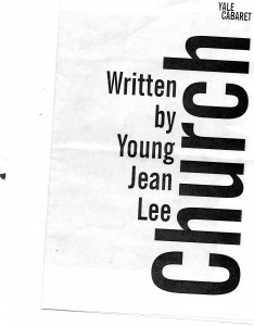 Church fits in snugly with many of the Cabaret offerings this year. There’s been an emphasis on new ways of seeing and feeling theater. Boundaries have consistently been tested regarding the need for narrative, the amount of physical movement required, dance as a pivotal component of theater, and matter-of-fact delivery that suggests reality more than performance. Church might have been planned as a culmination of some of these ongoing experiments, but in fact it was a last-minute addition to the Cabaret sched, replacing the new work Paul & Tim Fight a Bear (which was scuttled due to a school-based scheduling conflict of one of its creative team).