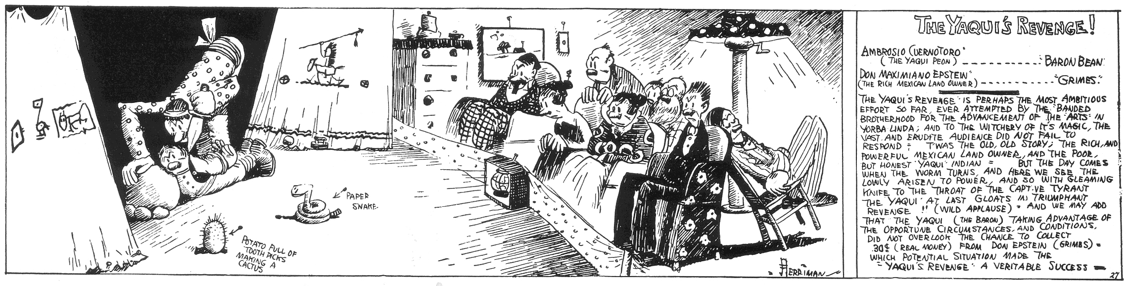 A 95-year-old Baron Bean strip found on a website devoted to the works of Krazy Kat kreator George Herriman. (A complete run of Baron Bean, 1916-17, was published by Hyperion Press in 1976.)