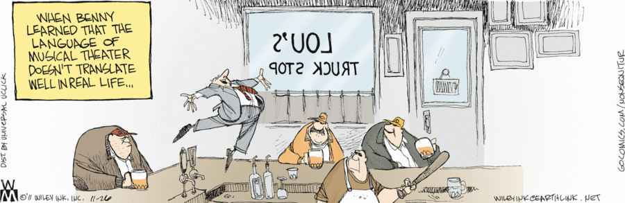 This is Wiley Miller‘s take on an old joke. The concept was also grist for a memorable Saturday Night Live sketch in November, 1996. (Transcription here.)