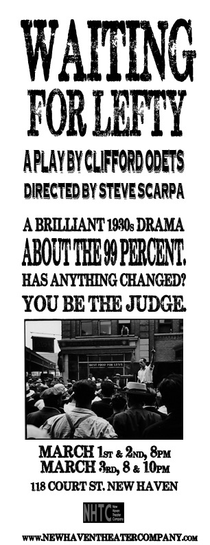 Opening this Thursday is Clifford Odets’ up-the-workers classic Waiting for Lefty. It’s the best-known pro-union play ever, and it’s satirized at the start of the the Coen Brothers’ film Barton Fink.