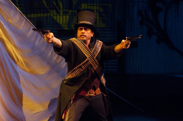 American Night’s playing at the Yale University Theatre, a conventional proscenium space. Casting hasn’t been announced: in the Oregon production, two of the three Culture Clash members—Montoya and Herbert Suiguenza—were in the cast.