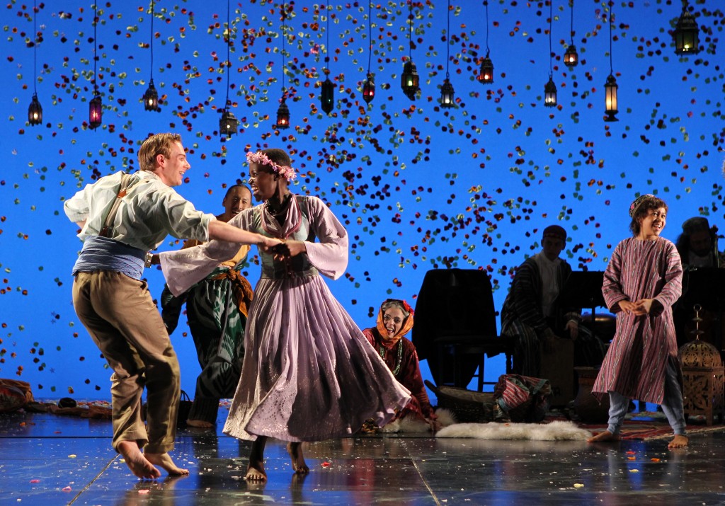 It’s party time, from the opening moments, when the cast interacts in an elaborate introductory tableau, right through several scenes of ceremony and pageantry (including a fertility dance) to the finale when longlost family members start piling up in a bleak ballroom where the chandeliers have been shrouded in sorrow.