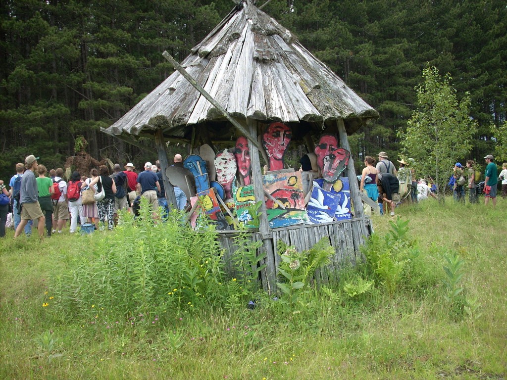 Rare, but not unprecedented. Schumann did the Fiddle Talk—his unique solo distillation of the Bread & Puppet aesthetic, with little of the pageantry but all of the charm—at the very first International Festival of Arts & Ideas in 1996. His very appearance at the fest, which also involved a Bread & Puppet performance on New Haven Green, was extremely meaningful to the arts-savvy and suggested that Arts & Ideas was operating on the highest levels it could reach. That first A&I festival featured a host of important artists from around the world, and Schumann (who might have travelled the least to get to New Haven) was the one they flocked to see. I remember sitting near the director and erstwhile puppeteer Peter Sellars (a onetime festival director himself, of the L.A. Festival) and seeing him just enthralled by Schumann.