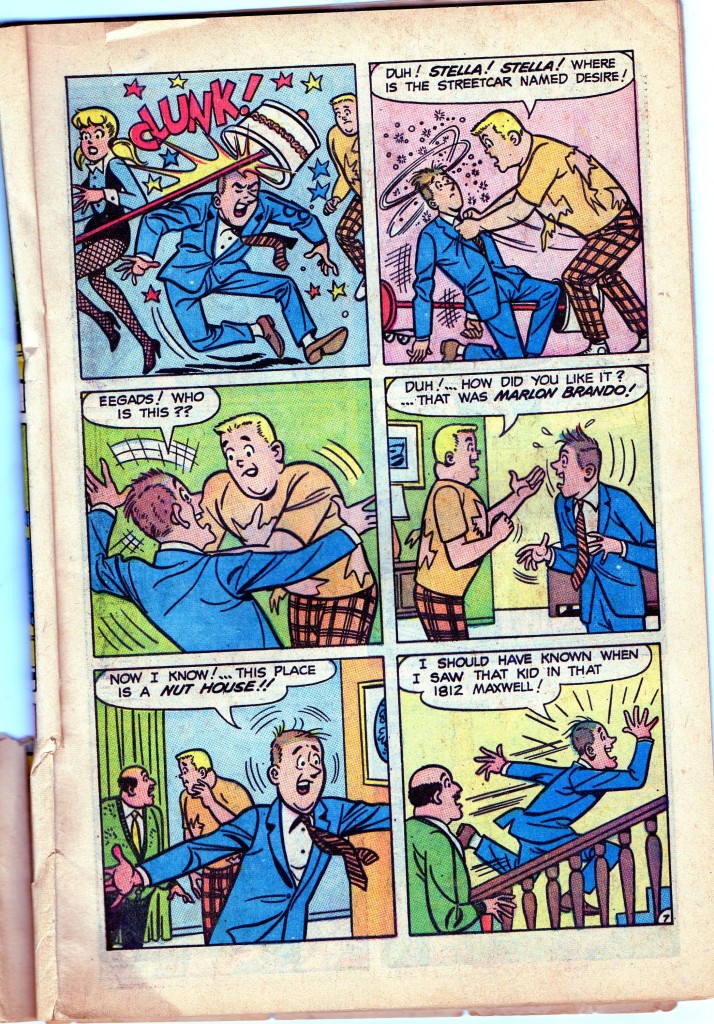 Archie and the gang have mistaken this poor man for a Hollywood agent or somesuch. I like the concept of football star Moose Mason as Tennessee Williams’ Stanley Kowalski. (For local readers: A Streetcar Named Desire had its world premiere at New Haven’s Shubert Theater, as a pre-Broadway try-out.)