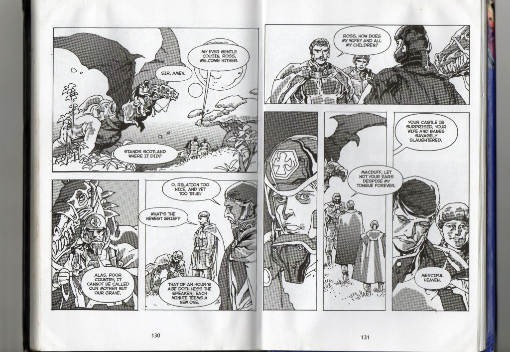 Not William Shakespeare’s Macbeth: The Graphic Novel. It’s set in “Stardate: 1040.” The warriors ride on flying dragons. There are at least a dozen MacBeth graphic novels out there, including a modern “Manga Shakespeare” adaptation with ninja light sabers. But none goes so far as this one.