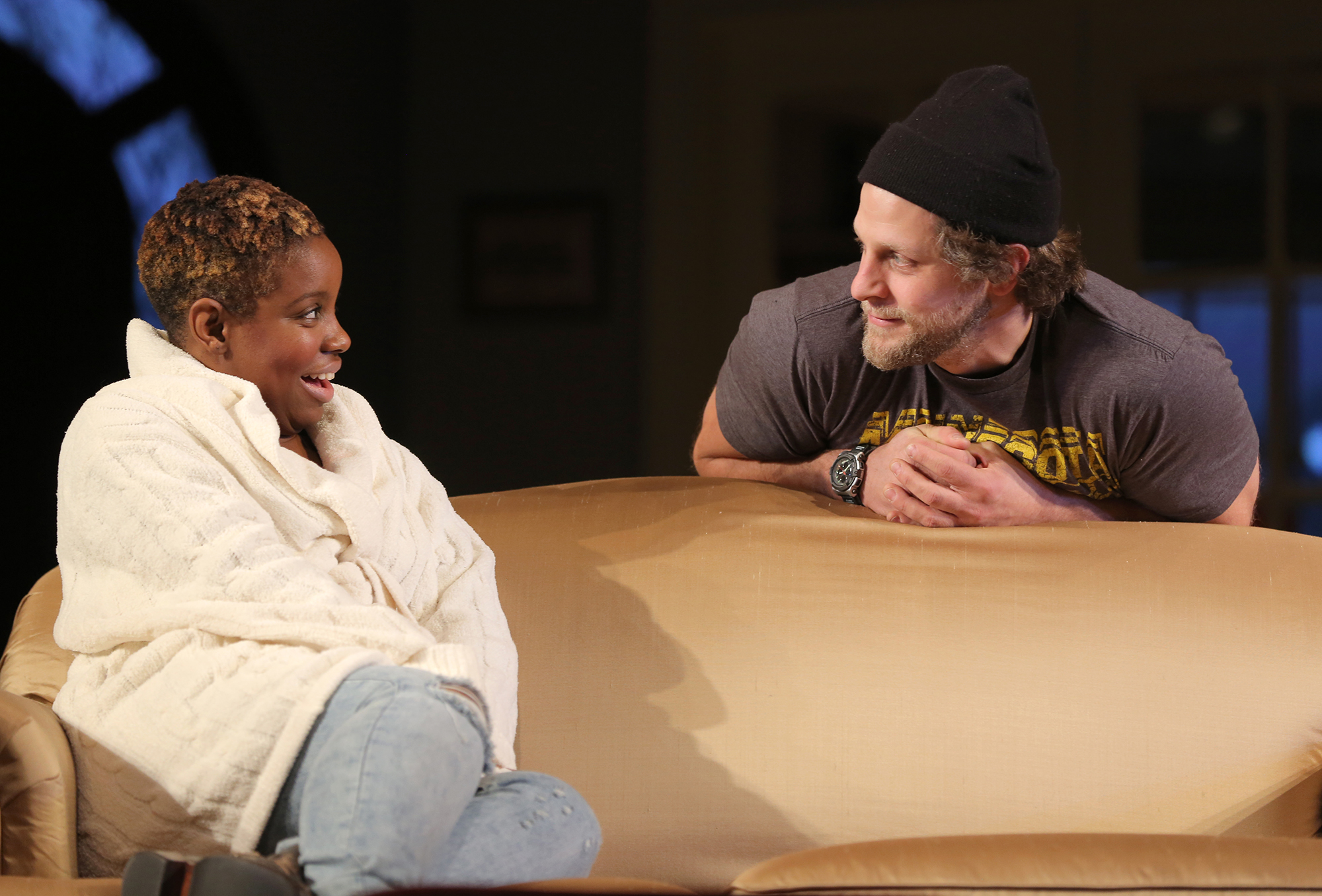 I don’t experience the Sat. mat. scene too often. Those performances are a different world from opening nights. The house for Familiar on Saturday Feb. 7 at 2 p.m. was nearly full, and you could tell that there had been any real papering (free tix) or even large group sales. The range in ages, dress styles and cultures seemed as broad as one can get at theater performances these days—so broad, I expect, as to be envied by other regional theaters, whose own matinees are overwhelmed by an elderly demographic.